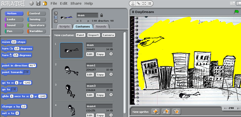 Historical Significance: These examples showcase the core mechanics and limitations of the 1.4 environment, making them valuable for understanding the evolution of Scratch (especially compared to modern versions). They highlight early techniques for motion, sensing, and graphics.